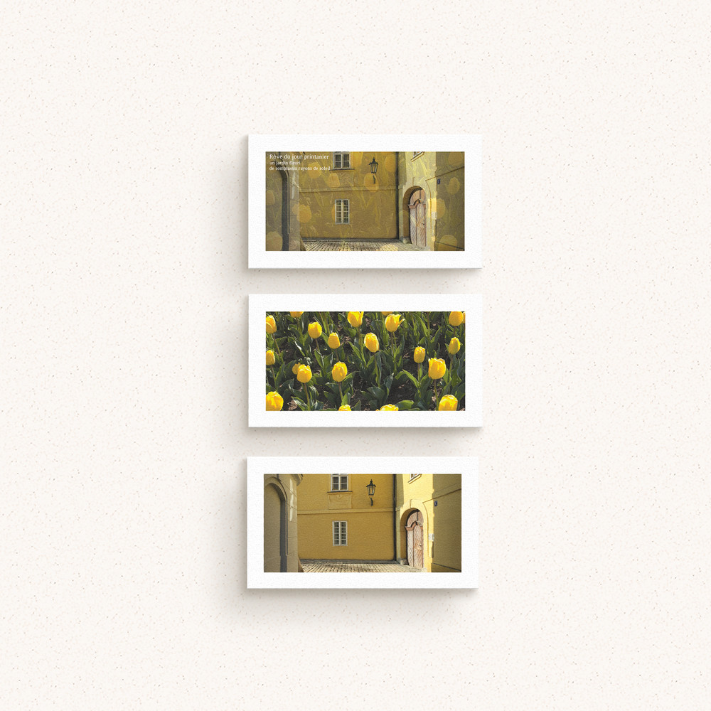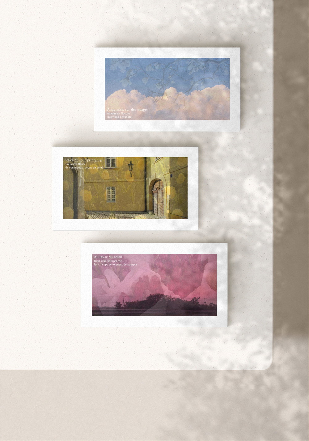 각 엽서의 첫 번째 장은 중첩된 색감의 단편들,